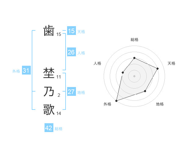 歯 埜乃歌さんの外格は31画の5点!
