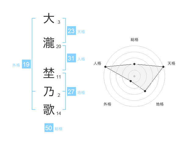 大瀧 埜乃歌さんを姓名の画数から五運を鑑定