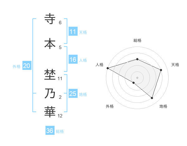 寺本 埜乃華さんを姓名の画数から五運を鑑定