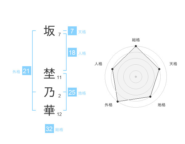 坂 埜乃華さんの総格は32画の5点!