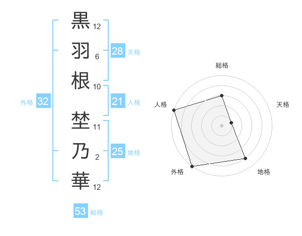 黒羽根 埜乃華さんを姓名の画数から五運を鑑定