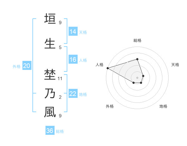 垣生 埜乃風さんの地格は22画の1点!