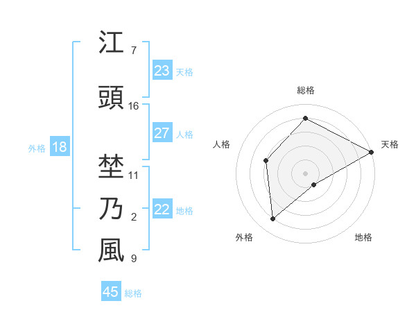 江頭 埜乃風さんを姓名の画数から五運を鑑定
