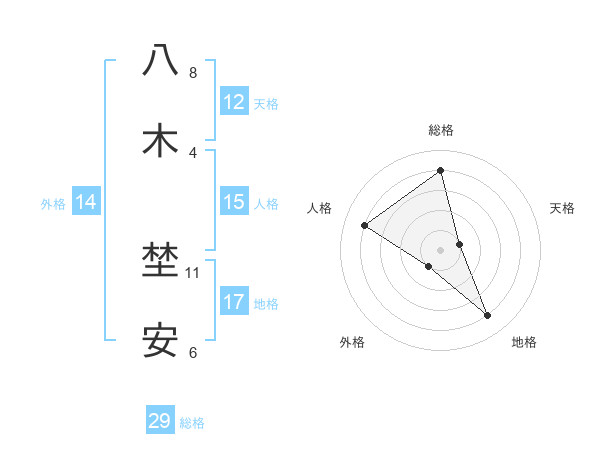 八木 埜安さんの総格は29画の4点!