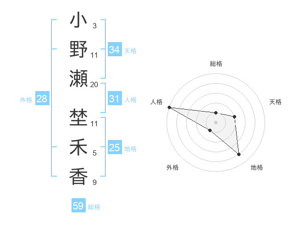 小野瀬 埜禾香さんを姓名の画数から五運を鑑定