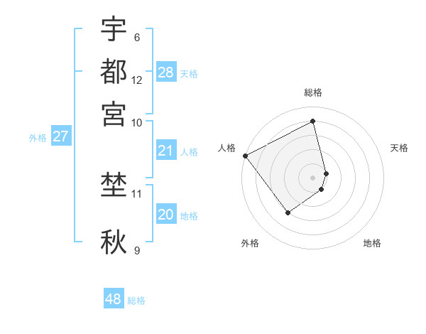 宇都宮 埜秋さんの総格は48画の4点!