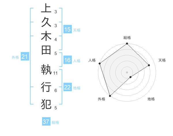 上久木田 執行犯さんの総格は37画の5点!