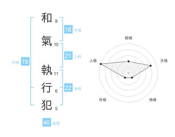 和氣 執行犯さんを姓名の画数から五運を鑑定