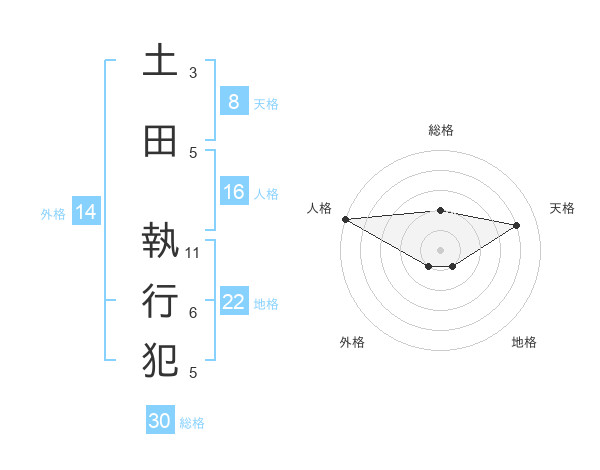 土田 執行犯さんを姓名の画数から五運を鑑定