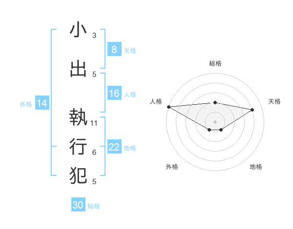 小出 執行犯さんの総格は30画の2点!