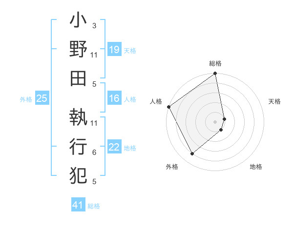 小野田 執行犯さんを姓名の画数から五運を鑑定