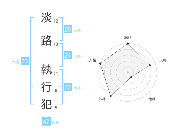 淡路 執行犯さんの総格は47画の5点!