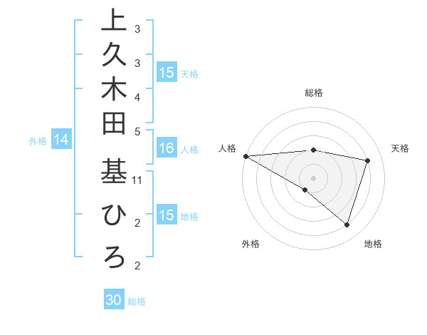 上久木田 基ひろさんの天格は15画の4点!
