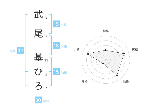 武尾 基ひろさんの総格は30画の2点!