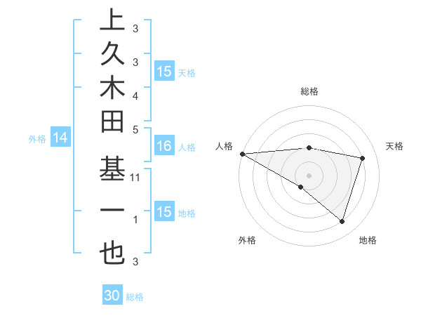 上久木田 基一也さんを姓名の画数から五運を鑑定
