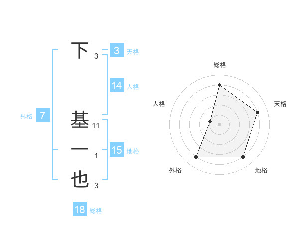 下 基一也さんの総格は18画の4点!