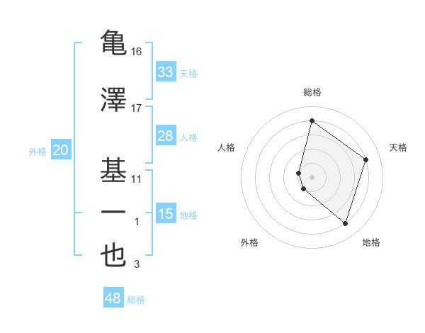 亀澤 基一也さんを姓名の画数から五運を鑑定