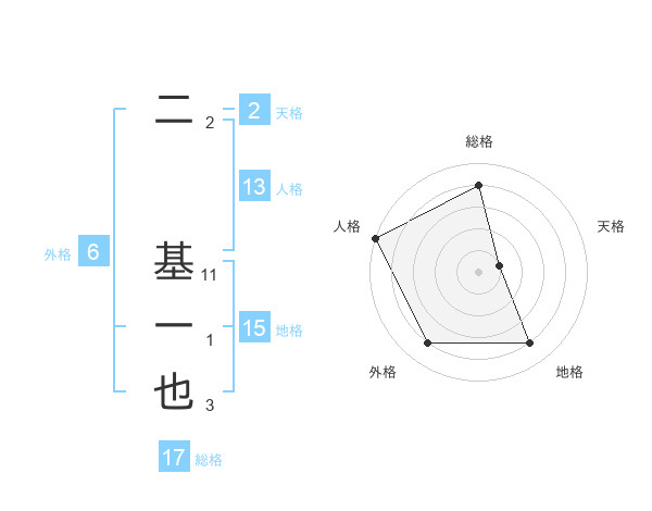 二 基一也さんの総格は17画の4点!