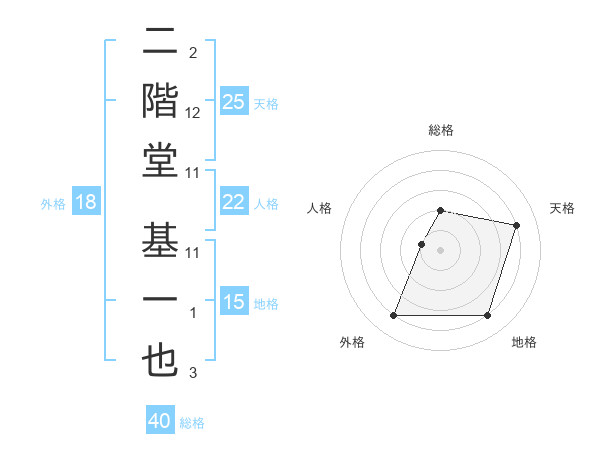 二階堂 基一也さんの天格は25画の4点!