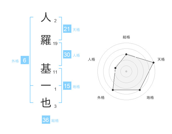 人羅 基一也さんの天格は21画の5点!