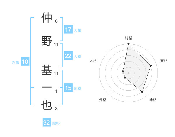 仲野 基一也さんの天格は17画の4点!