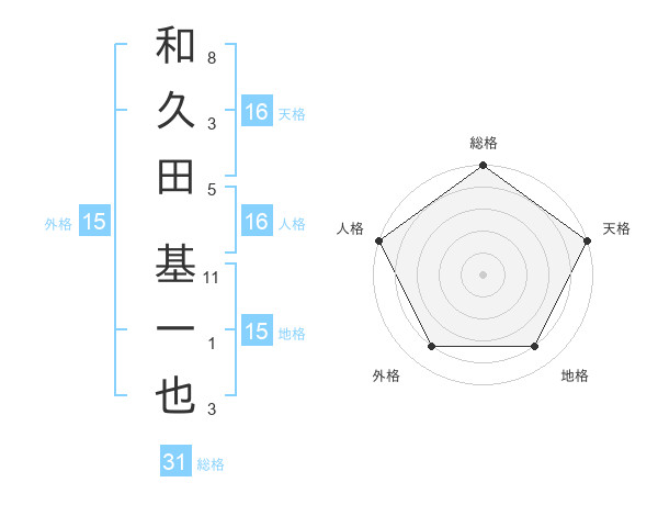 和久田 基一也さんを姓名の画数から五運を鑑定