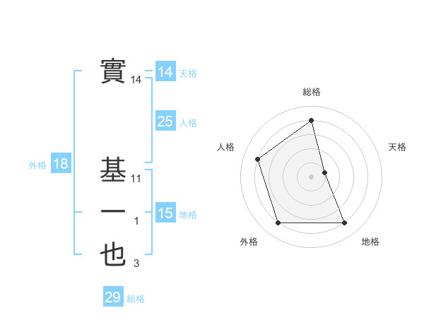 實 基一也さんの総格は29画の4点!