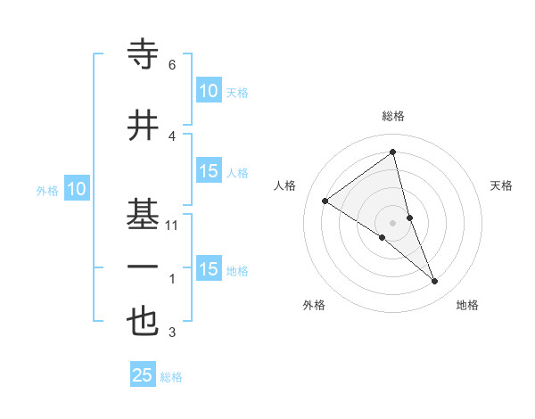 寺井 基一也さんの総格は25画の4点!
