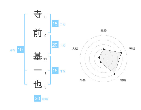 寺前 基一也さんの天格は15画の4点!
