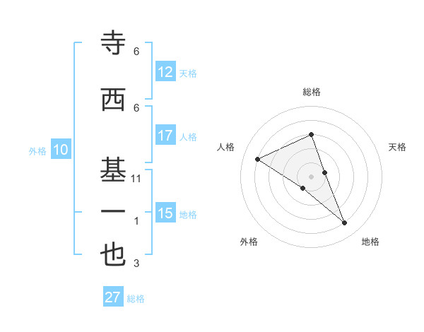 寺西 基一也さんの総格は27画の3点!