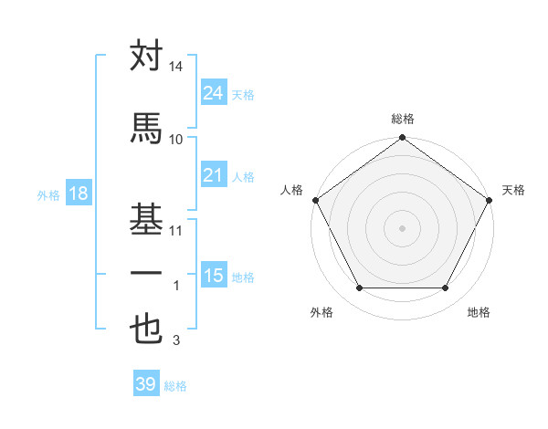 対馬 基一也さんを姓名の画数から五運を鑑定