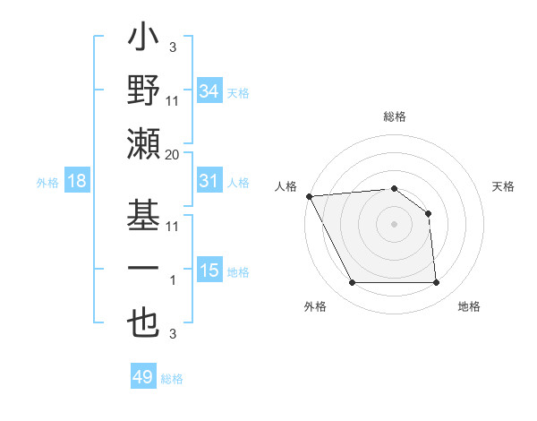 小野瀬 基一也さんを姓名の画数から五運を鑑定