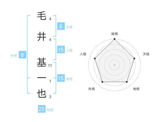 毛井 基一也さんの総格は23画の5点!
