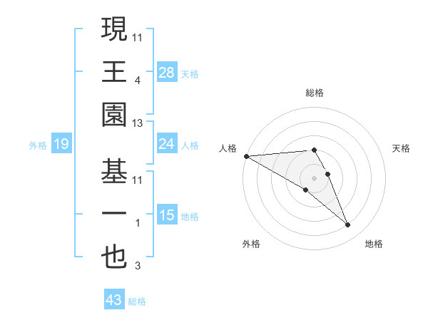 現王園 基一也さんを姓名の画数から五運を鑑定