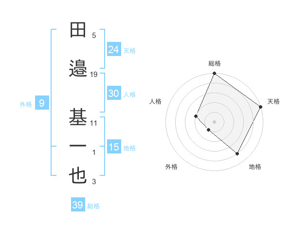 田邉 基一也さんを姓名の画数から五運を鑑定