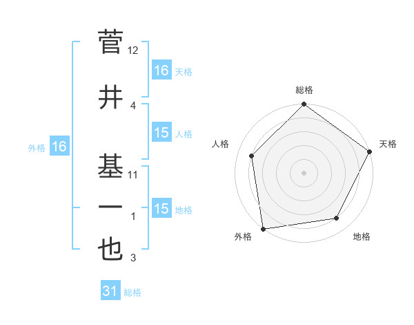 菅井 基一也さんの地格は15画の4点!