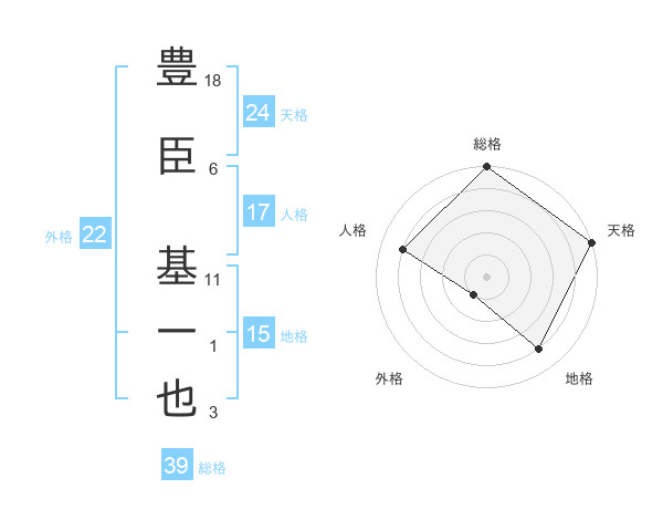 豊臣 基一也さんを姓名の画数から五運を鑑定