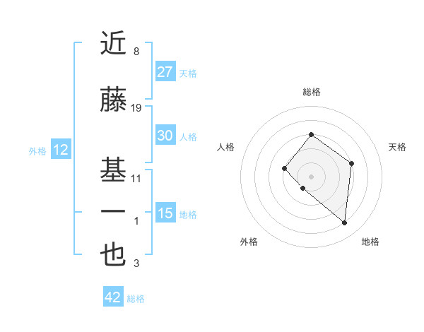 近藤 基一也さんの地格は15画の4点!