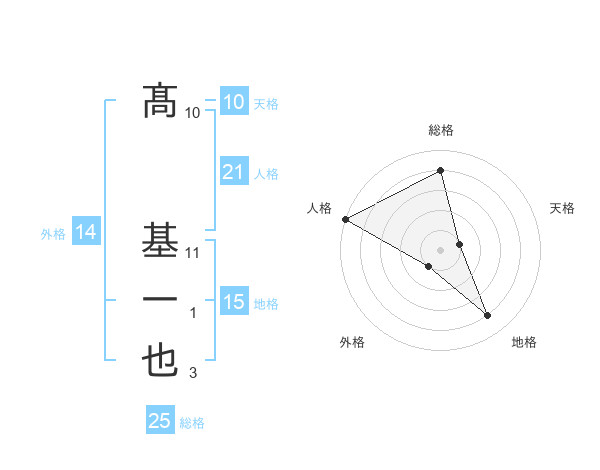 髙 基一也さんの総格は25画の4点!