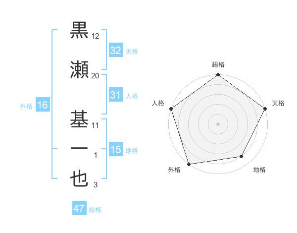 黒瀬 基一也さんの総格は47画の5点!