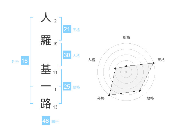 人羅 基一路さんの地格は25画の4点!