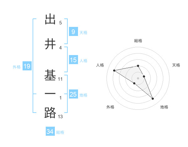 出井 基一路さんの地格は25画の4点!