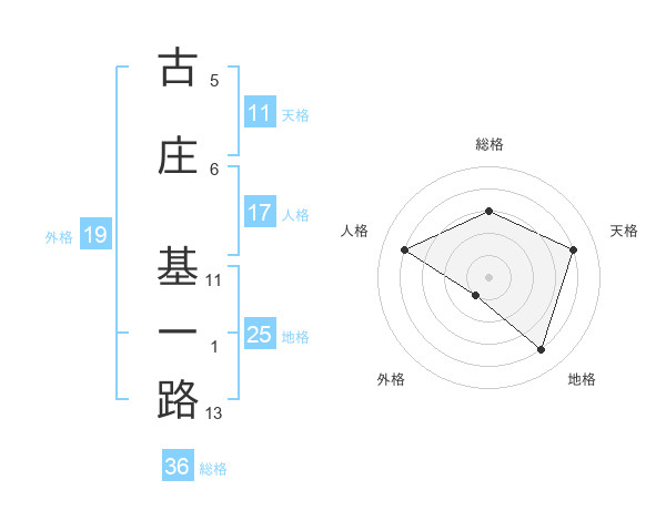 古庄 基一路さんを姓名の画数から五運を鑑定