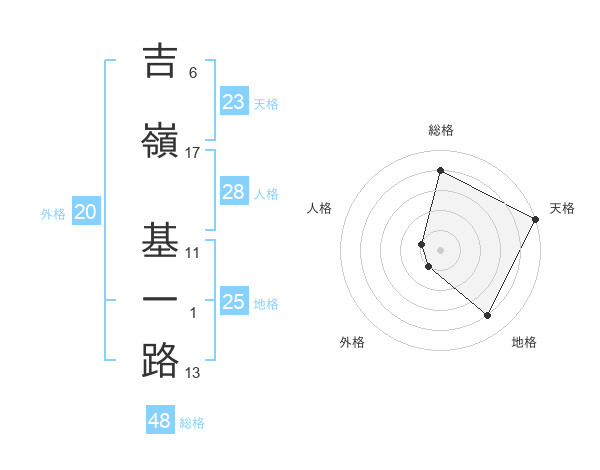 吉嶺 基一路さんの地格は25画の4点!