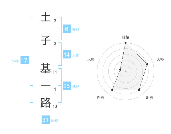 土子 基一路さんの総格は31画の5点!