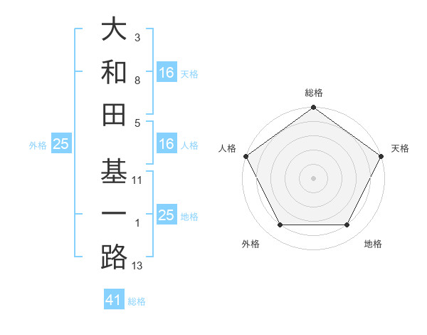 大和田 基一路さんを姓名の画数から五運を鑑定