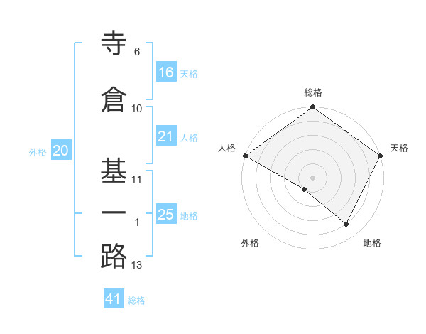 寺倉 基一路さんの総格は41画の5点!