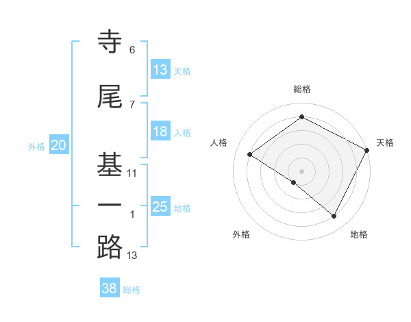 寺尾 基一路さんを姓名の画数から五運を鑑定