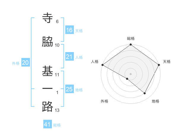寺脇 基一路さんの地格は25画の4点!