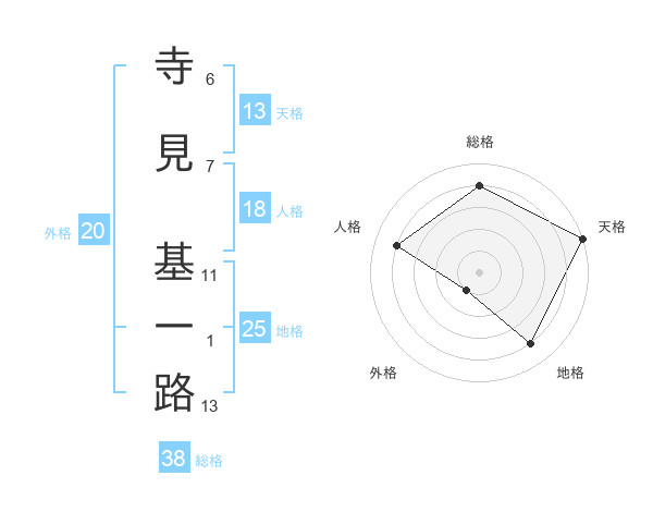 寺見 基一路さんの総格は38画の4点!